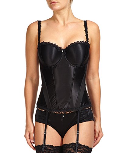 Description : Sexy lace up basque with supportive boning and underwired cups in satin silk fabric trimmed with exquisite lace.