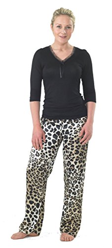 Ladies Three Quarter Sleeve Jersey and Satin Animal Print Pyjamas Black/Pale Gold Sizes 10 12 14 16 18 20 (18)