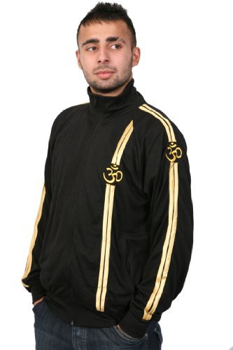 Description : Hindu Jacket, the Hindu Ohm is embroided in gold on the front, with 2 parallel lines of gold stiched fabric running down the front and arms.