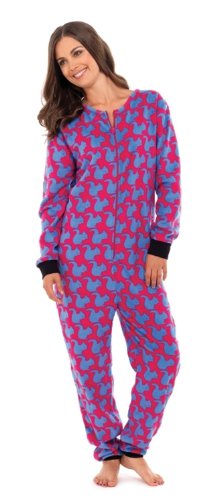 Description : Ladies animal print squirrel design ,Long Sleeved with Hood and Zipper Front Opening, all in one ladies sleepwear, fleece pyjamas, thermal pyjamas,100% Polyester, ski wear, thermal pyjamas, ladies onesie, 200 grams, available in blue, biege and pink colours