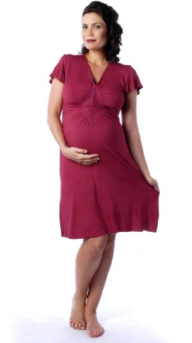 Description : V-neck nightie with fluted short sleeves for extra coverage, provides stylish night time comfort. It has an internal shelf bra for modesty and support, and easy to pull down for feeding. The front has a lace insert and the ruching detail provides a flattering fit for both during pregnancy and after.