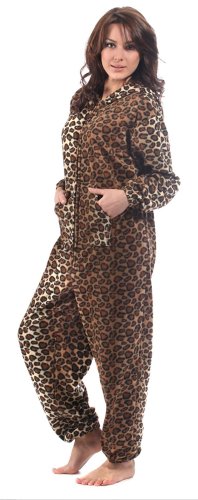 Ladies All In One Loungewear Suit New Season for 2012 Ladies Lightweight Warm and Cosy Hooded All in One Fleece Suit Leopard Print Size 8-10