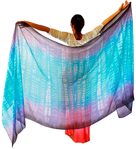 Description : Beautifully hand-dyed, unique, patterns and blends. The veils are 100% silk habotai weighing 4mm which is the lightest silk available without compromising the quality. The lightness of the silk, which floats beautifully, allows for greater expression. The sizes are 2yds, 3 yds or 3.5 yds x 45". The shortsides have a very smooth, silk thread, almost invisible hem and the long sides are professionally finished. 100% of the silk veils featured here are hand-dyed by Nahari here in the US. Hand Wash seperately in cold water or Dry Clean. The veils are used for belly dance, veil meditation, worn as sarongs, scarves, or used as curtains or as a light but very warm cover. Made with Love and Care in the mountains of New Mexico. We guarantee your satisfaction!