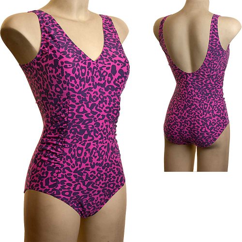 - This lovely animal print swimsuit is available in two fantastic colours - cream/black or fuchsia/deep purple