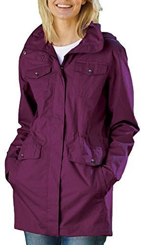 Description : Ladies Country Estate Bude Jacket Coat Waterproof Fabric Quality Branded Lightweight Concealed Hood Double Zip Taped Seams Multi Pockets Printed Polyester Lining Stylish Attractive & Fashionable Design Walking Outdoors Countrywear Damison Plum Navy Size 10,12,14,16,18