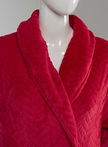 Ladies Slenderella Super Soft Fleece Dressing Gown Textured Shawl Collar Bathrobe Medium (Raspberry)