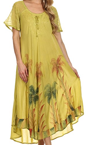 Sakkas 14610New - Kai Palm Tree Caftan Tank Dress / Cover Up - Avocado - One Size Regular