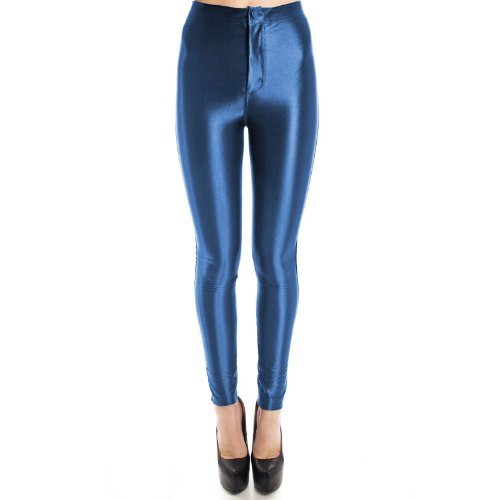 ENVY BOUTIQUE LADIES HIGH WAISTED DISCO SHINY PANTS BLUE 6