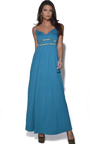 Description : This gorgeous Grecian Maxi Dress is perfect for hot summer days and your holiday Complete the look with metallic gold flats with a large tote bag Comfortable super stretchy Grecian maxi dress with contrasting gold metallic straps and waistband