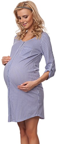 - Nightshirt for nursing mothers. ¾ Sleeves. Very comfortable and warm. Striped print and chest pocket.