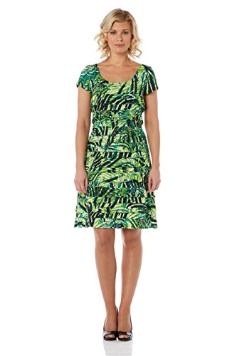 Roman Originals - Tropical Print Dress - Short Sleeve Summer Holiday - Celeb Inspired Jersey Floral - Green Size 12