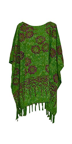 Cool Kaftans HIBISCUS Flower Print Poncho Kaftan Top One Size Plus - Green - FS Cool Kaftans