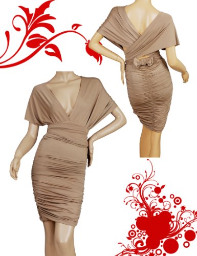 Donna Bella Convertible Party Cocktail Bodycon Little Ruched Dress - Color: Brown, Size: 8