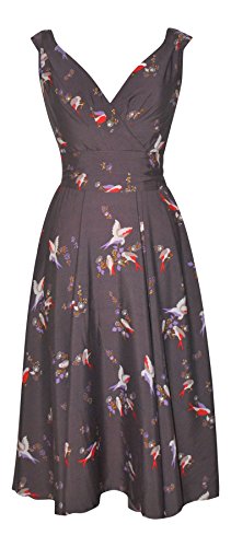 Ladies 1940's 1950's Vintage Retro Style Grey Bird Print Full Circle Swing Tea Dress (Size 14)