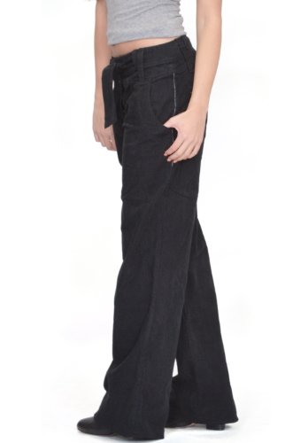 Baggy Wide Leg Boyfriend Cord Trousers (Black, 14)