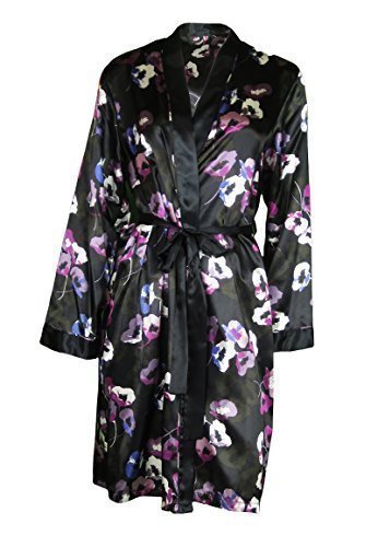 Description : This beautiful dressing gown / robe from the Per Una range from M&S features a wide contrasting black trim on the neckline, at cuff of the sleeves & matching wide satin belt held in place by belt hoops on each side at the waist, plus ribbon ties on the inside (to prevent the robe front opening if the belt comes loose). It is made from a luxurious satin material with a striking poppy print in shades of pink, purple & ivory which gives this item a glamorous look and feel. Its length is approximately 36" from shoulder to hem when laid flat. Inside arm is approximately 16.5-17". Material: 100% polyester. Machine washable at 40°C. This beautifully designed, glamorous and sophisticated dressing gown would make an excellent gift for yourself or someone special. The branding has been removed to prevent store return and in compliance with UK resale laws. Some of these nightdresses may be very slight seconds.